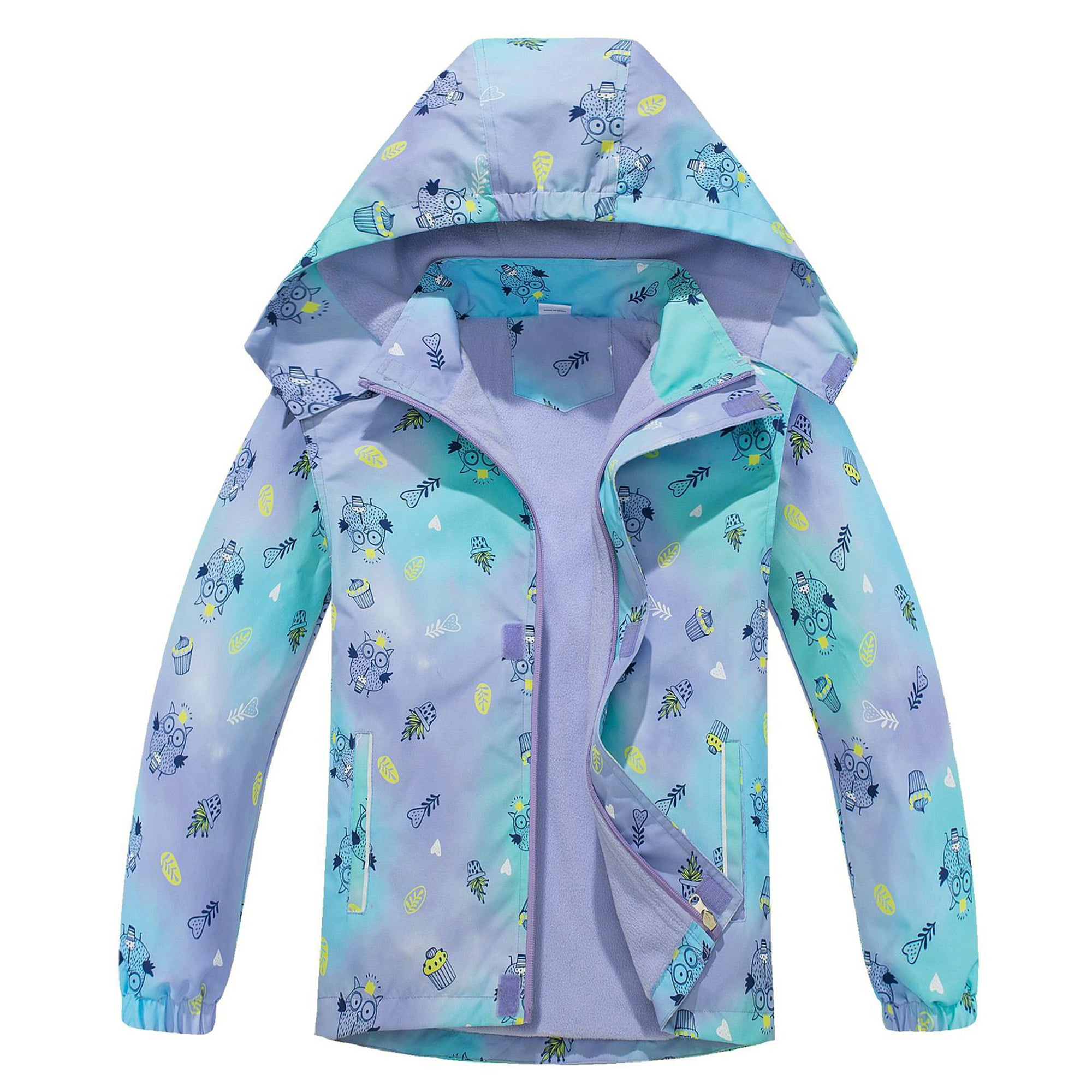 Hiheart Girls Outdoor Owl Cartoon Fleece Lined Light Windproof Jacket With Hood Lavender Purple 10 12 Years Walmart Com
